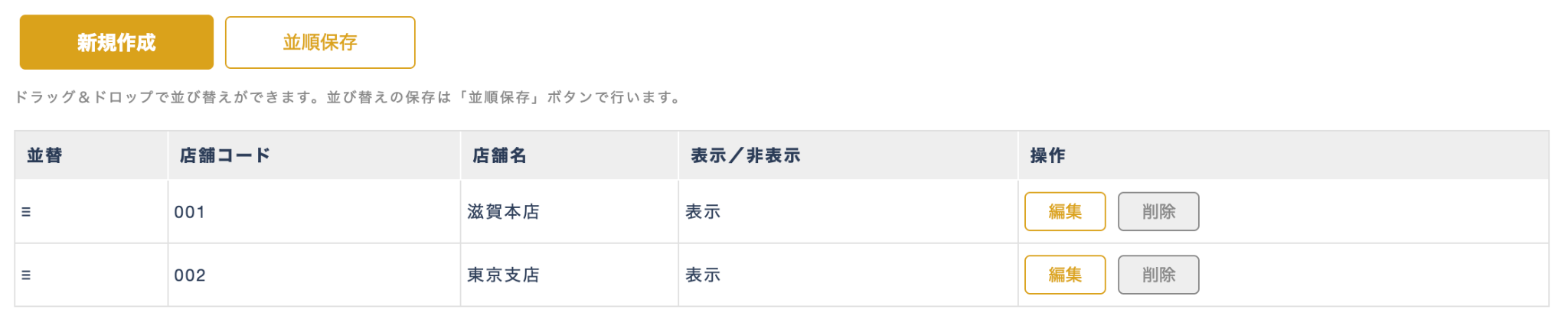 「新規作成」ボタン | クリックすると、受取店舗の新規作成画面へ遷移する |