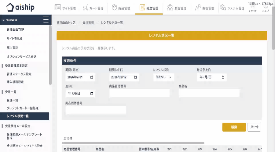 ・レンタル個体管理機能